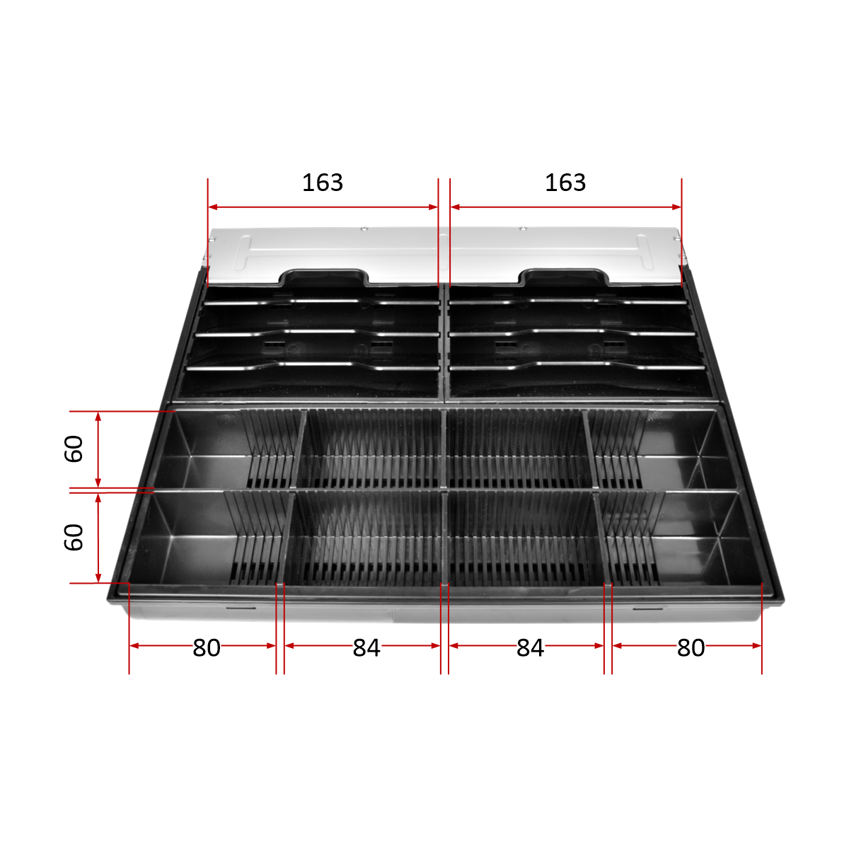 Náhradní plastový EURO pořadač, ve kterém se bankovky umísťují do přihrádek. Pořadač je určen pro pokladní zásuvky Virtuos C420D a C430D.