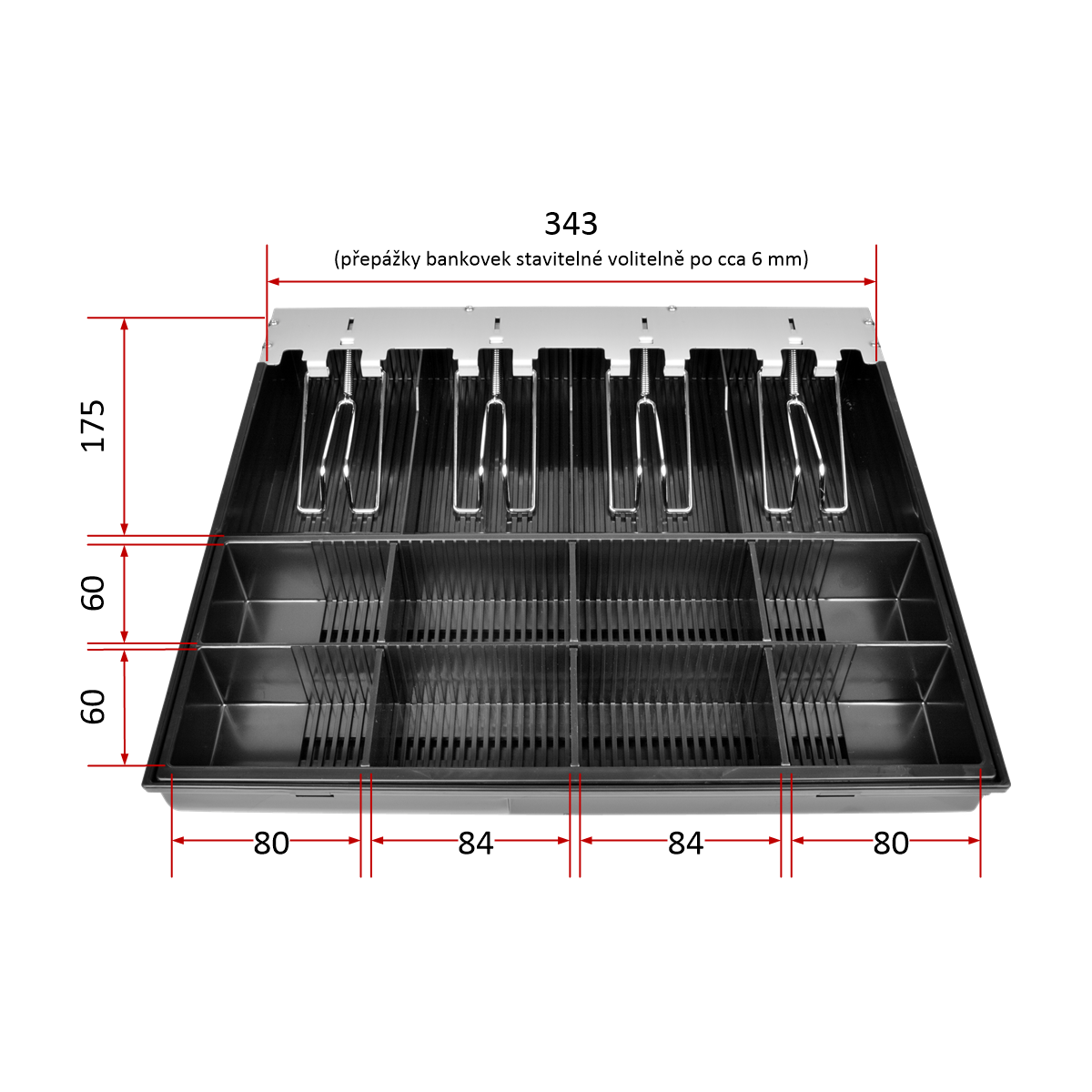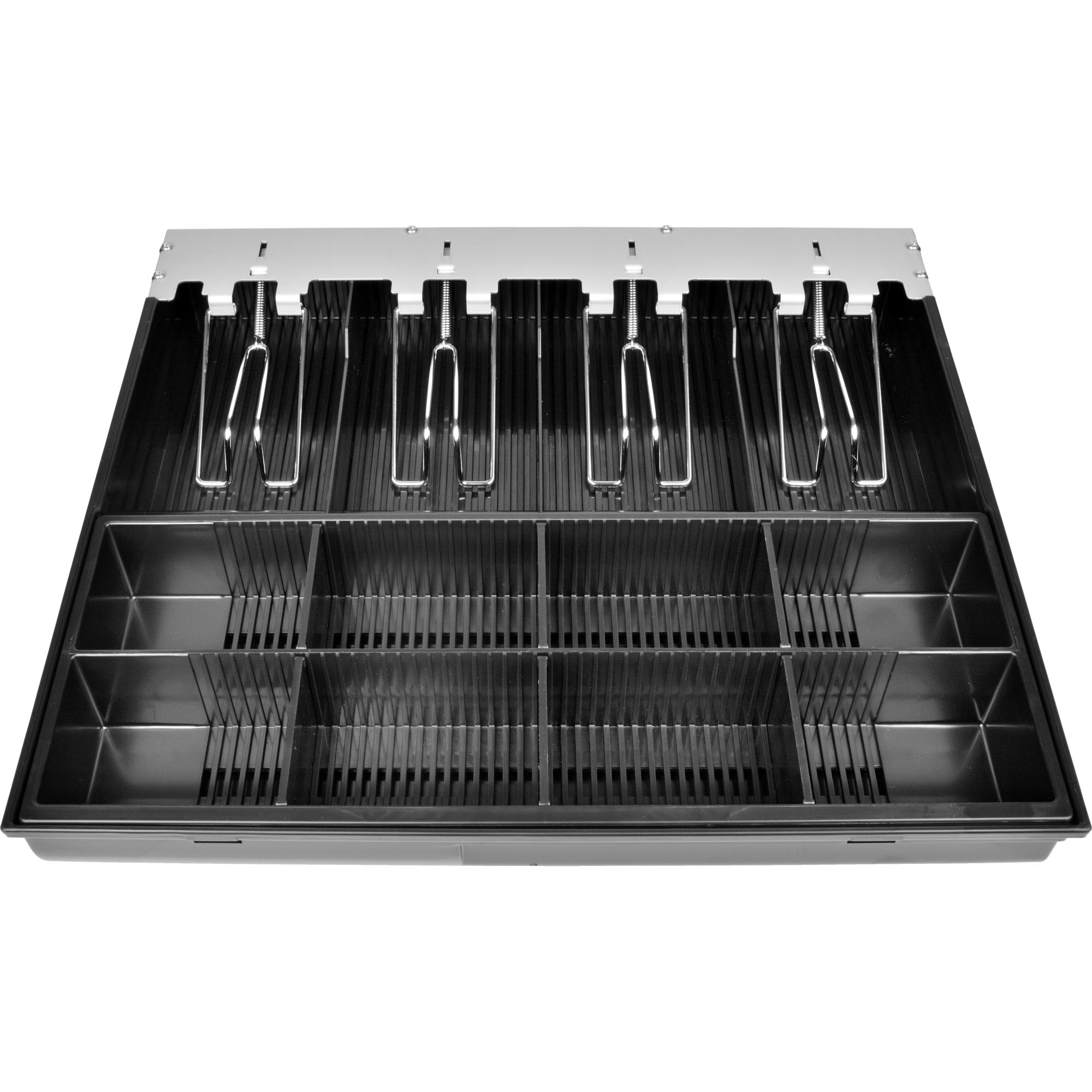 Náhradní plastový pořadač s kovovými držáky bankovek je určen pro pokladní zásuvky Virtuos C420D a C430D.