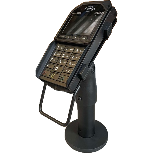 Sestava zahrnující univerzální stojan 120 mm EAX2046 a držák pro platební terminály Ingenico.